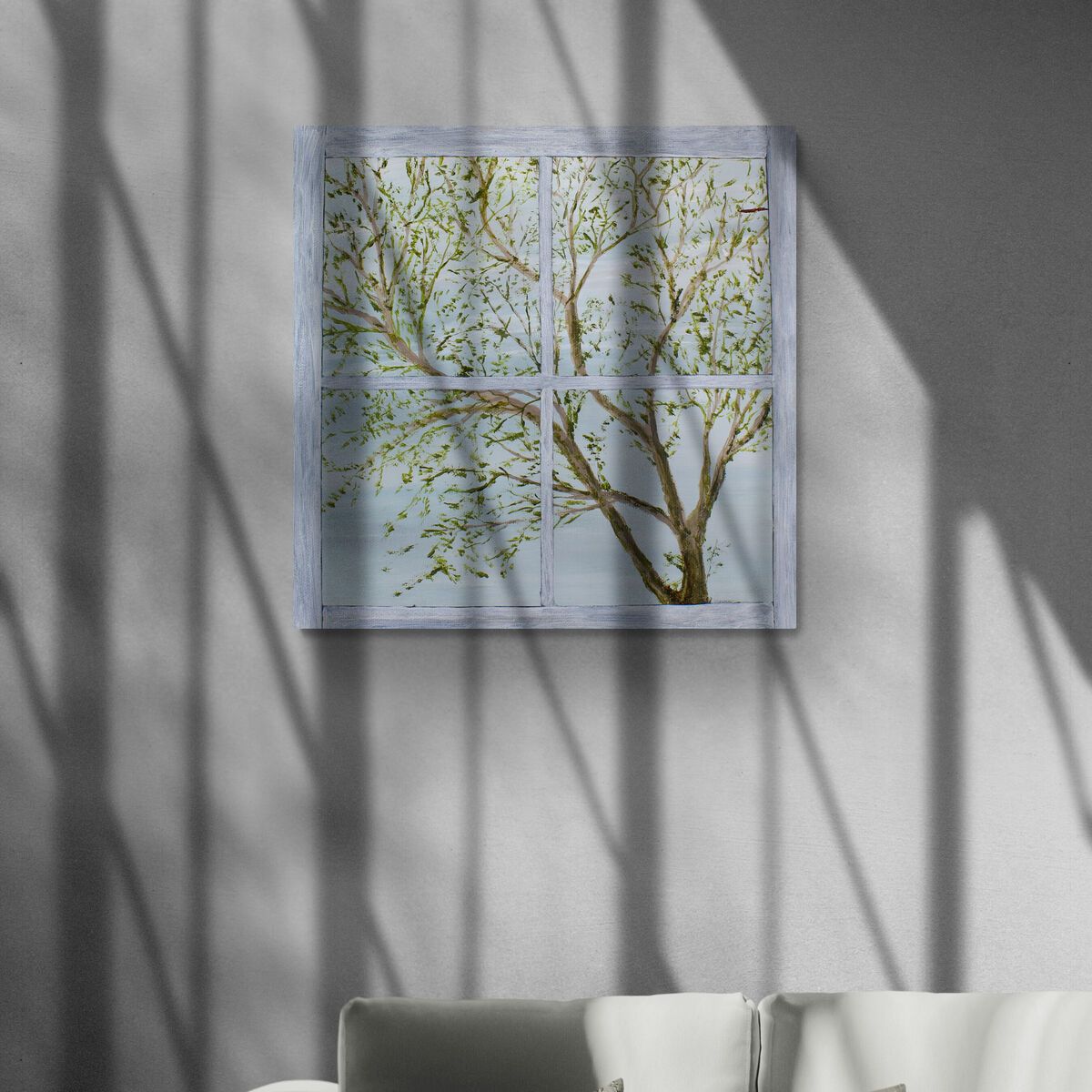 Giclee Print of my original acrylic painting of a budding Chinese Elm Tree through a window. A great piece of a Yoga/Meditation room or a Coffee/Tea shop.