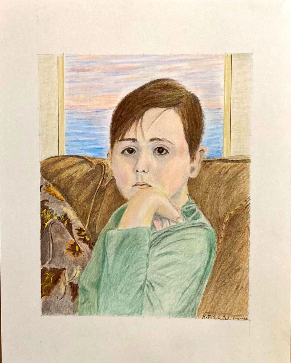 Commission Portrait, Wax-based colored pencil or graphite. Contact me on this website