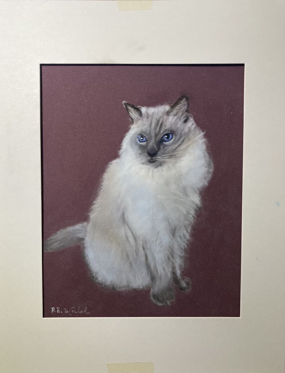 Pastel painting on Pastelmat. When Martha was a puppy someone beat her and broke her jaw and left her in the trash. A very kind lady found her and nursed her back to health. Later in life, she had to have her right leg amputated. She passed away last year and this is a memorial portrait of her.
