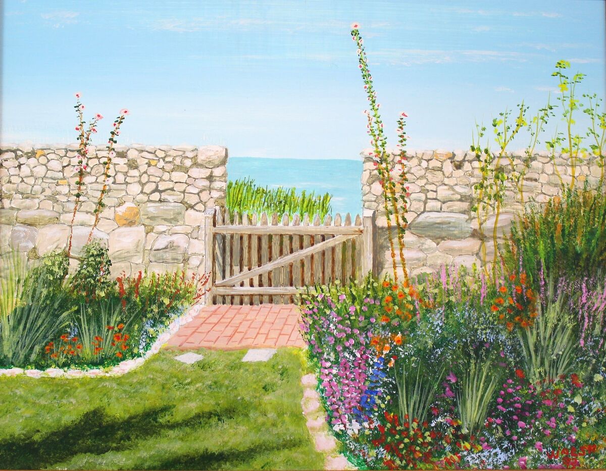 Giclee print of my original acrylic painting. You wake, grab a cup of fresh-brewed coffee. On your way through the garden, your skin drinks in the moist ocean air. You walk through the gate and down to the white sand beach. A beautiful Carmel-By-The Sea Morning.